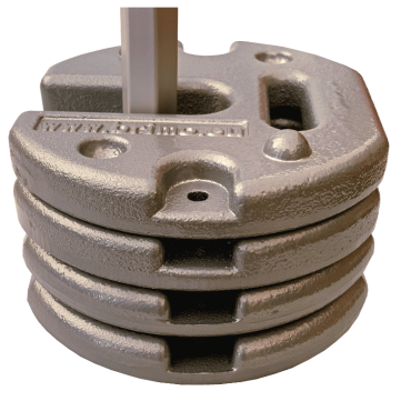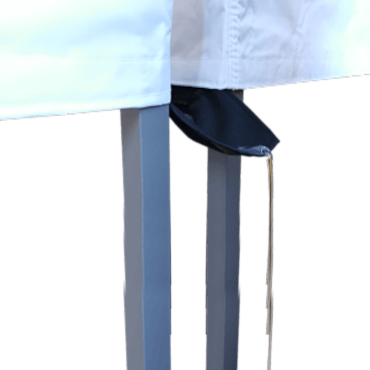 Een goede beveiliging van de reclametent is essentieel vanwege zijn formaat en mobiliteit. Op harde ondergronden bieden wij zand- of waterzakken en ook stalen gewichten als stabiliserende elementen aan.