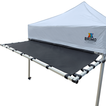 Als er regen binnenkomt aan de open zijde van de tent, maar je wilt deze niet volledig afsluiten, bieden we een extra luifel aan (tentluifel).