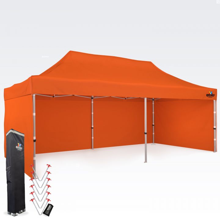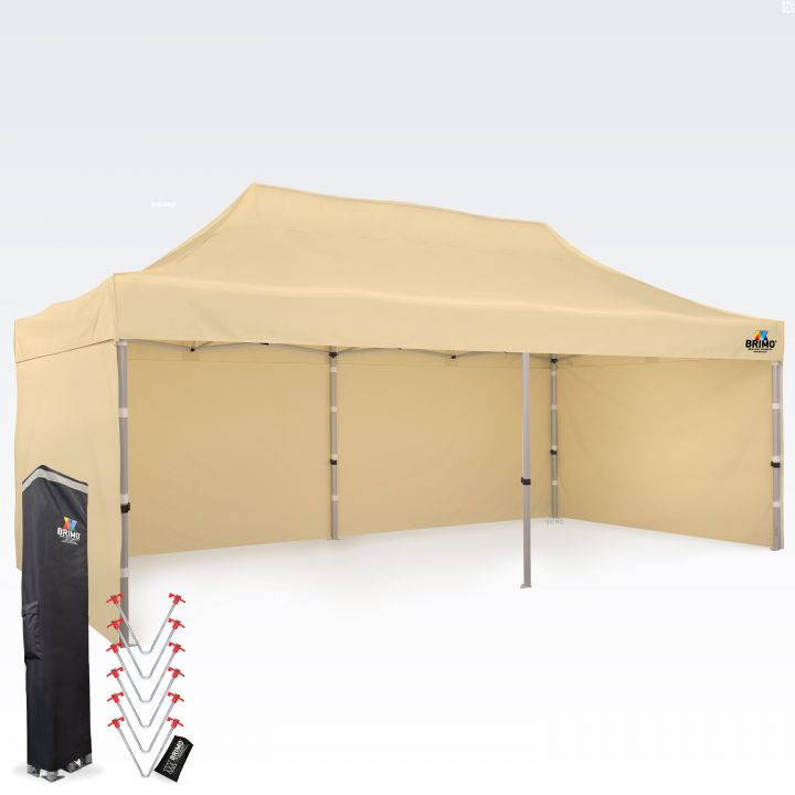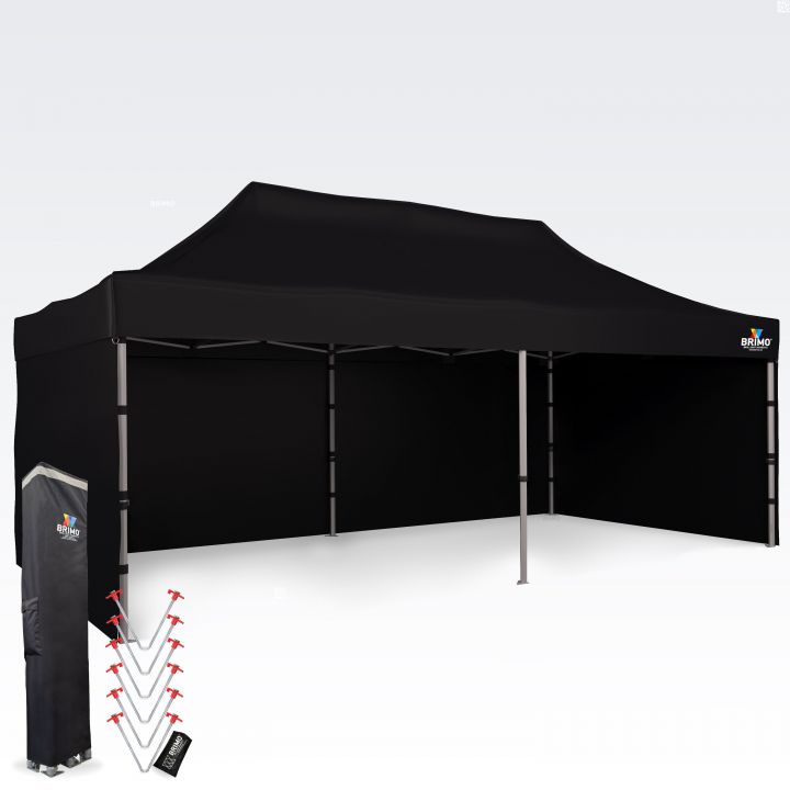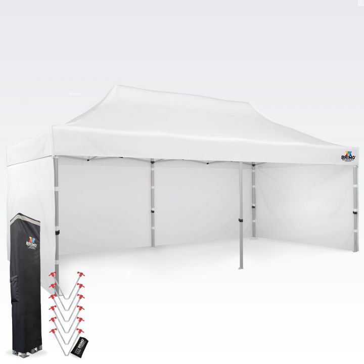 - Totale hoogte: Dankzij de indrukwekkende hoogte van 355 tot 395 cm is uw tent ook van grote afstand niet te missen. Dit garandeert een uitstekende zichtbaarheid van uw presentatie en logo op elk evenement.