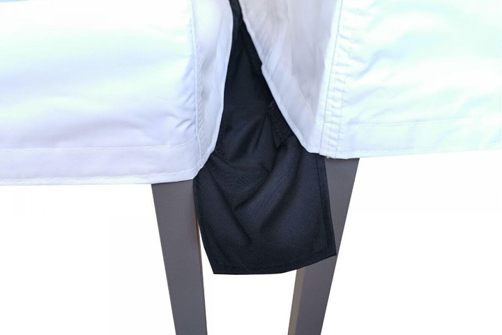 De montage is heel eenvoudig. Bevestig de goot met de klittenband aan de tent, die onze tenten rondom het dak hebben.