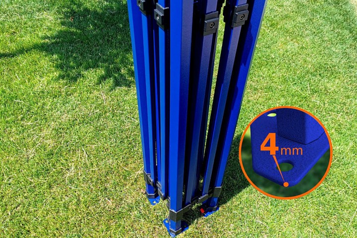 Het lichte frame van de easy up paviljoen tenten is ontworpen voor snelle montage. Dankzij het automatische vouwsysteem duurt het opzetten minder dan een minuut en iedereen kan het doen. De materiaalafwerking en hoogwaardige poedercoating zorgen voor stabiliteit en een lange levensduur. Het frame is gemaakt van hoogwaardig staal. De binnenwanden zijn tot 1,1 mm dik.