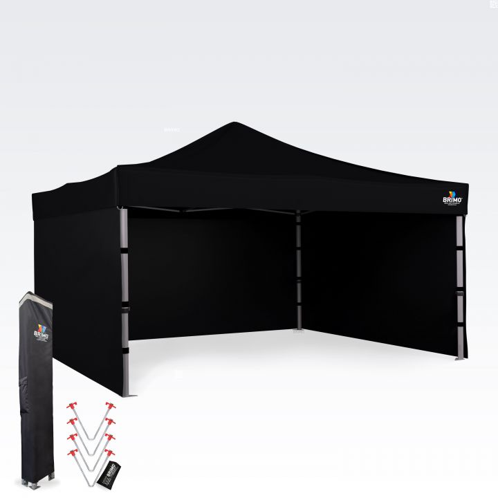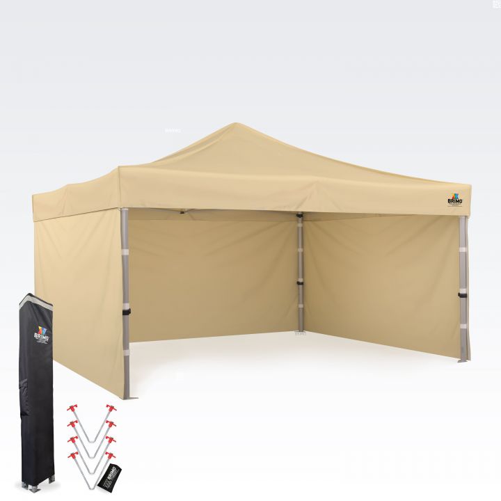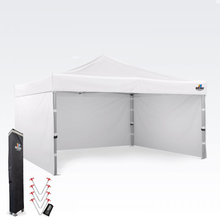 - Totale hoogte: Dankzij de indrukwekkende hoogte van 355 tot 395 cm is uw tent ook van grote afstand niet te missen. Dit garandeert een uitstekende zichtbaarheid van uw presentatie en logo op elk evenement.