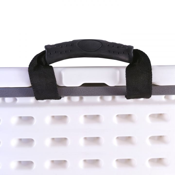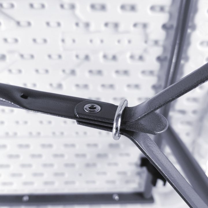 - Dankzij de draagkracht van 150 kg en de duurzaamheid van het kunststof blad van 15 mm met een versterkte rand van 38 mm, kan de opvouwbare tafel worden gebruikt in een werkplaats of op een bouwplaats.