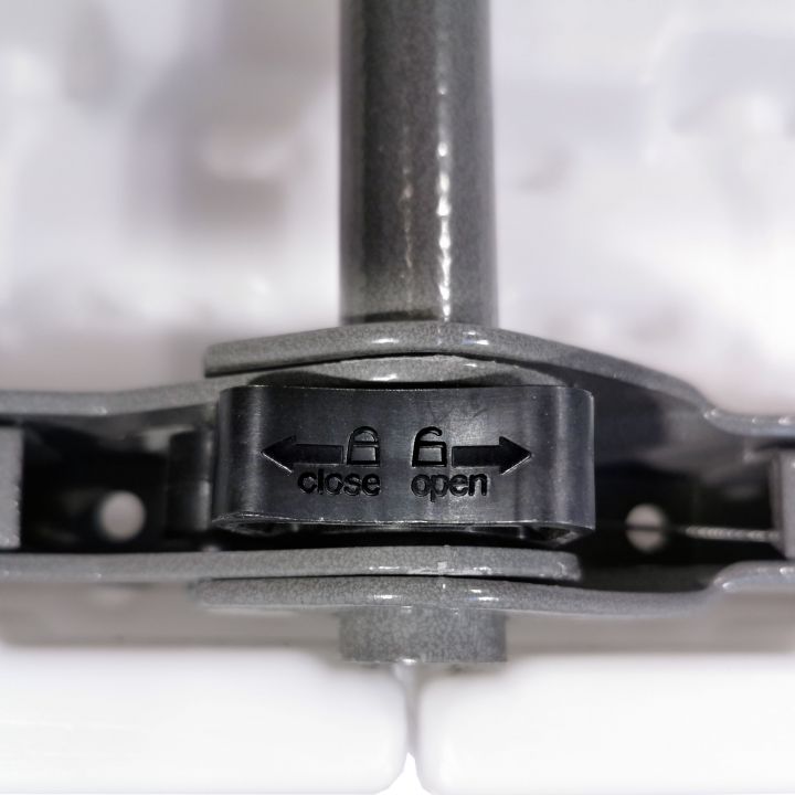 - De poten zijn van staal en vouwen zich in de kunststof constructie wanneer ze worden ingeklapt.