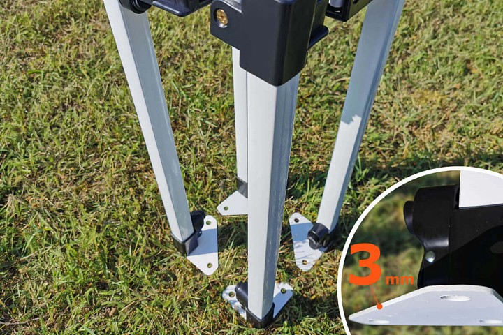 De stalen constructie is gemaakt van dikke profielen in ivoorkleur. Speciale poedercoating beschermt het metaal tegen corrosie. Het oppervlak is krasbestendig. Elke kleur van het doek past goed bij de kleur van de constructie. We bieden de tenten aan in zeven kleuren. De materiaalkwaliteit is bovenstandaard.