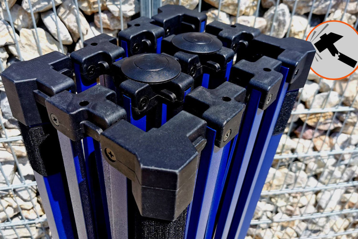 Ons innovatieve systeem heeft de kwaliteit van onze beurs tenten pop-up aanzienlijk verbeterd. De stevige stalen constructie met sterke binnenwanden en zeskantige poten zorgt voor stabiliteit en extra krasbestendigheid. De binnenwanden zijn 1,1 mm dik.