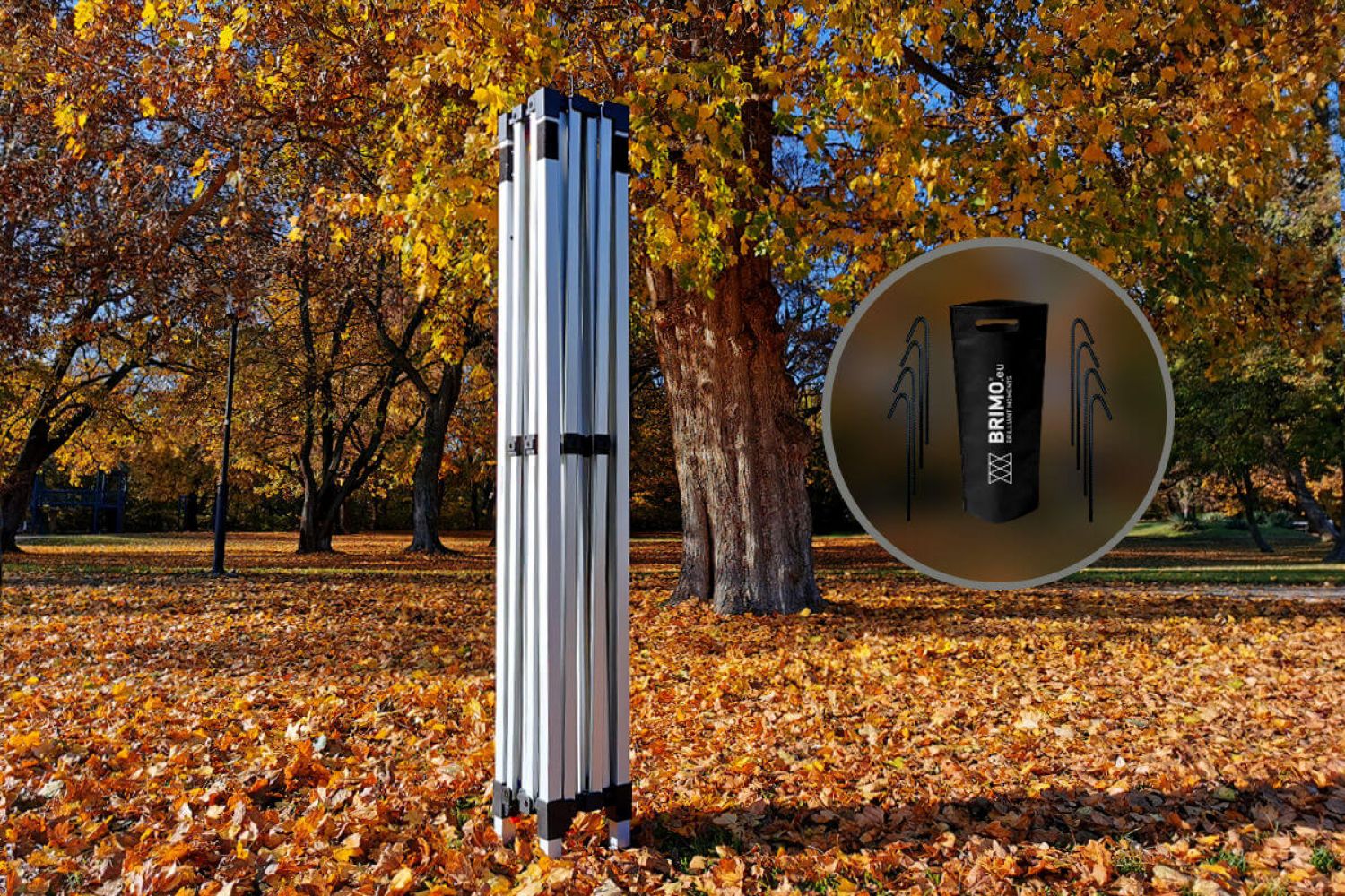 • Model Exclusive van aluminium, geschikt voor gebruik bij wind tot 60 km/h. Poten met openingen voor verankering in de grond met haringen - gratis!