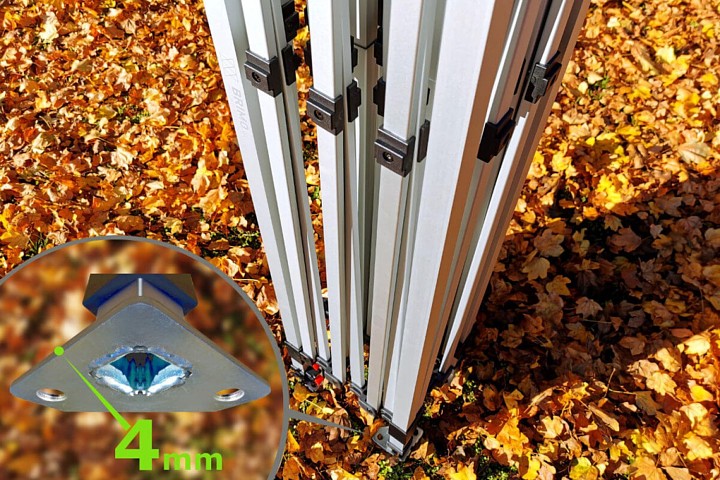 Het meest gebruikte materiaal is aluminium. Het heeft ongelooflijk goede eigenschappen, is licht van gewicht, maar heeft een grote sterkte en zekerheid. Het lage gewicht zal je waarderen als je vaak verkoopt onder de tent en deze moet verplaatsen. De tent wordt in enkele seconden opgezet en ingeklapt.