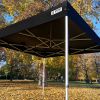 De promotionele tent doorstaat moeiteloos de weersomstandigheden. De tent staat op sterke poten die dikke voeten hebben. Elke voet heeft twee gaten voor snelle verankering van de tent. De tent moet altijd verankerd worden. Het pakket bevat haringen voor verankering. Snelle overkapping, uitstekende presentatie, gemakkelijk transport, dat zouden we samenvatten als de populairste verkoop tent.
