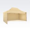 Opvouwbare reclametenten 3x4,5m zijn perfect voor bedrukking, wat ze de populairste presentatie tents maakt. De open voorkant van 4,5 m biedt voldoende ruimte voor de verkoop van goederen. Dankzij de dicht geweven, waterdichte polyesterstof en de PVC-laag, die voor uitstekende schaduw zorgt, zal zonlicht je goederen onder de tent niet beschadigen of vernietigen.