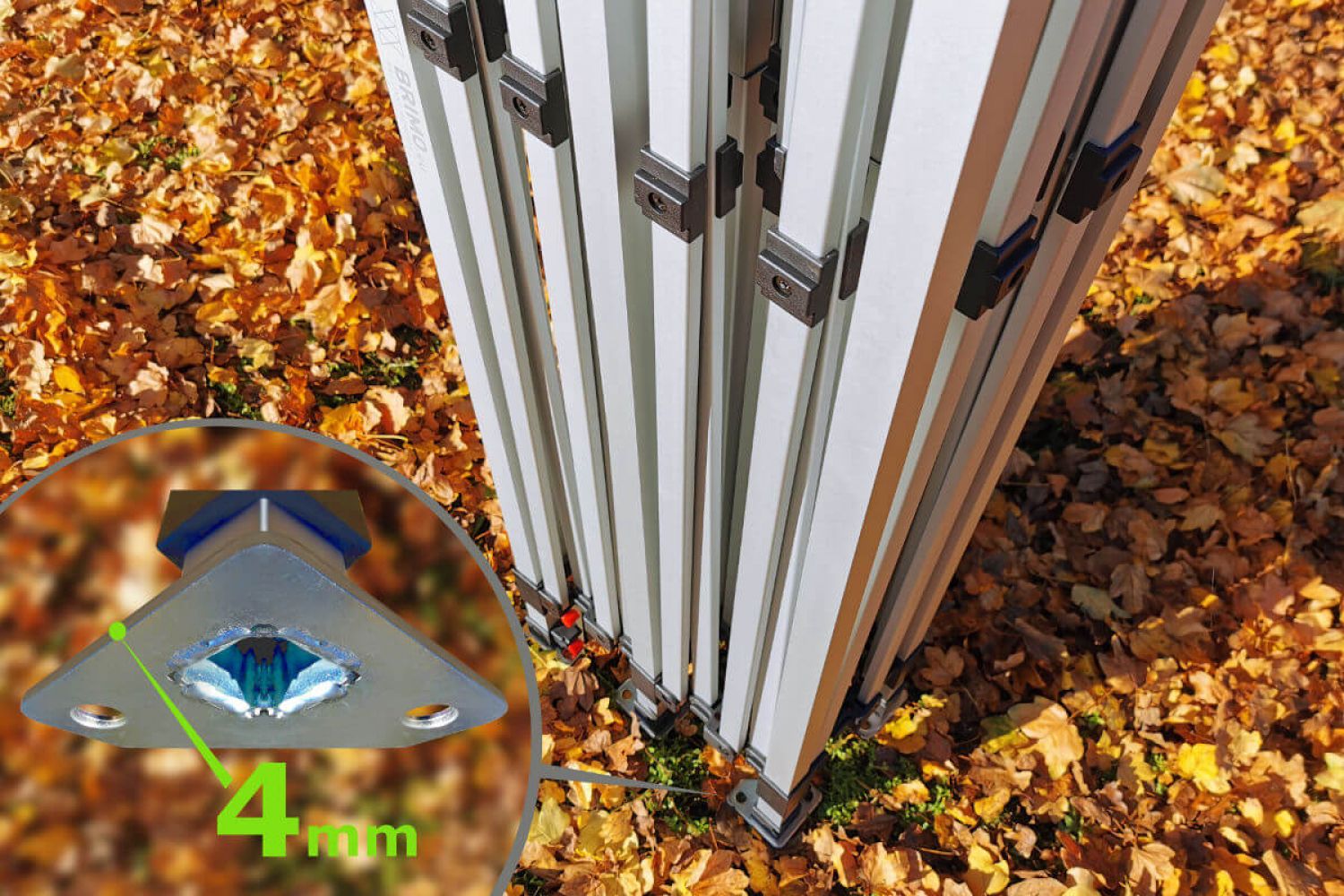 Het moderne ontwerp zal je bevallen. De aluminium constructie is ultralicht van gewicht en de tent is gemakkelijk te verplaatsen. Dankzij het automatische opvouwsysteem kan de tent 3x6m snel worden opgevouwen en opgezet op elke locatie. Er zijn geen extra gereedschappen nodig. Onderdelen kunnen eenvoudig worden vervangen door schroefverbindingen.