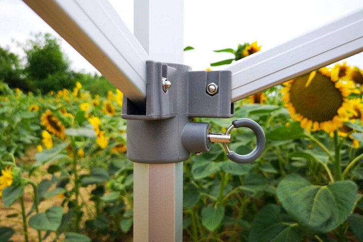- Totale hoogte: Dankzij de indrukwekkende hoogte van 310 tot 340 cm is uw tent ook van grote afstand niet te missen. Dit garandeert een uitstekende zichtbaarheid van uw presentatie en logo op elk evenement.