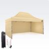 Deze expositie tuintent van 3x4,5m is de ideale keuze voor iedereen die op zoek is naar de gulden middenweg – deze partytent biedt een royale overdekte ruimte, maar blijft tegelijkertijd zeer mobiel. Voor 100% bescherming tegen slecht weer zorgt een waterdicht dakzeil met dubbele stiksels, dat aan de binnenzijde nauwkeurig is getapet met thermische tape. Maximale veiligheid tegen UV-straling en perfecte schaduw worden gegarandeerd door de premium Oxford polyester stof met een interne PVC-laag, waarvan ook de duurzame zijwanden zijn gemaakt.