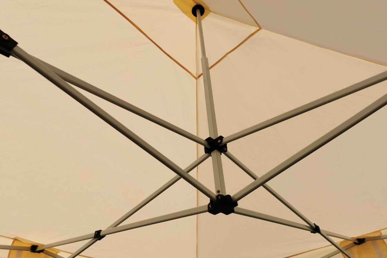 Het hart van de tent is de hoogwaardige constructie met poedercoating in ivoorkleur, die de tent beschermt tegen corrosie en mechanische schade. Deze oppervlaktebehandeling biedt de volgende voordelen: