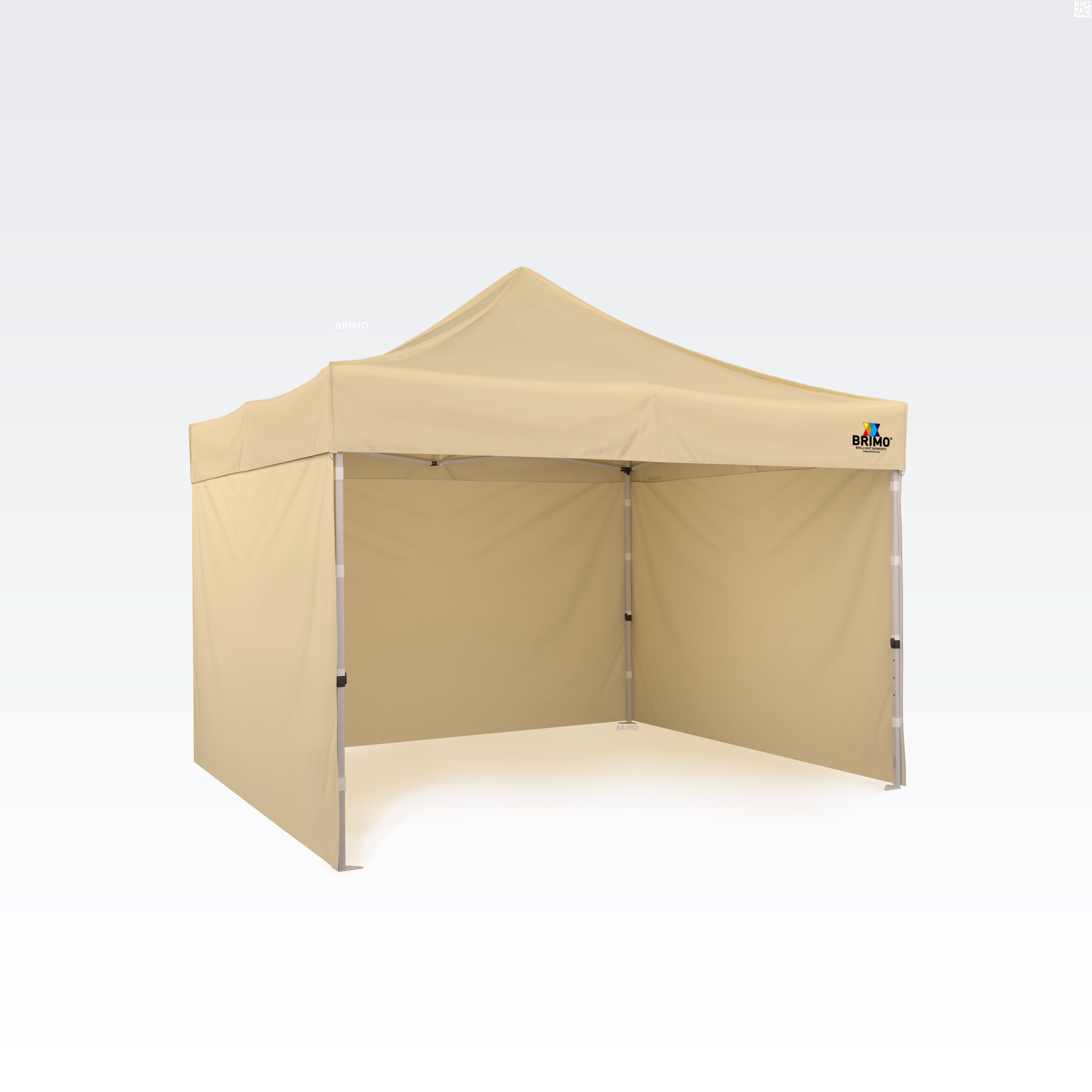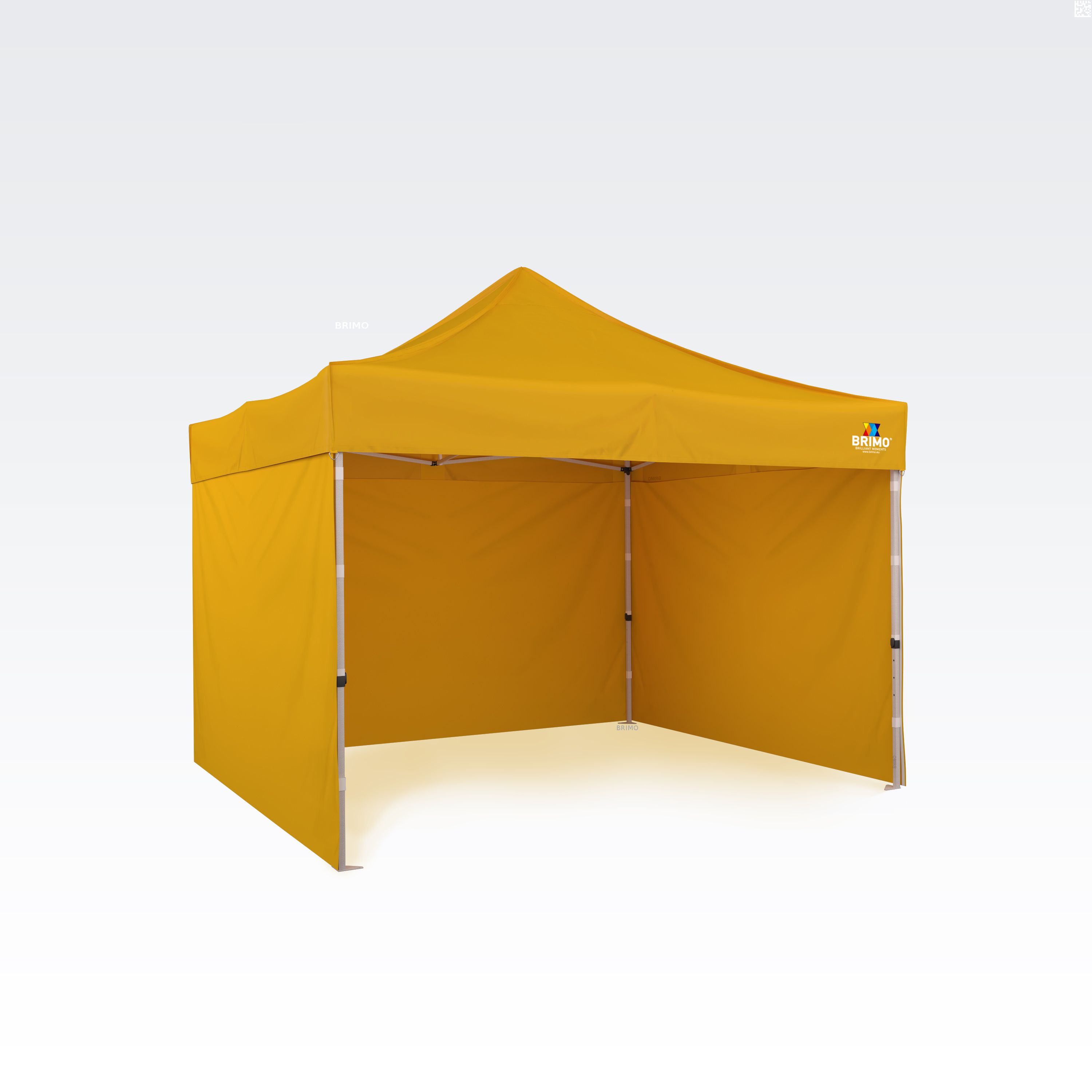 Zowel het dakzeil als de zijwanden zijn gemaakt van dichtgeweven polyesterstof van 330 g/m2 met een interne PVC-coating. Deze combinatie garandeert dat noch aanhoudende regen, noch felle zon uw evenement zullen verpesten. De zijwanden worden eenvoudig met klittenband aan het dak bevestigd en elke wand is afzonderlijk afneembaar voor maximale flexibiliteit.