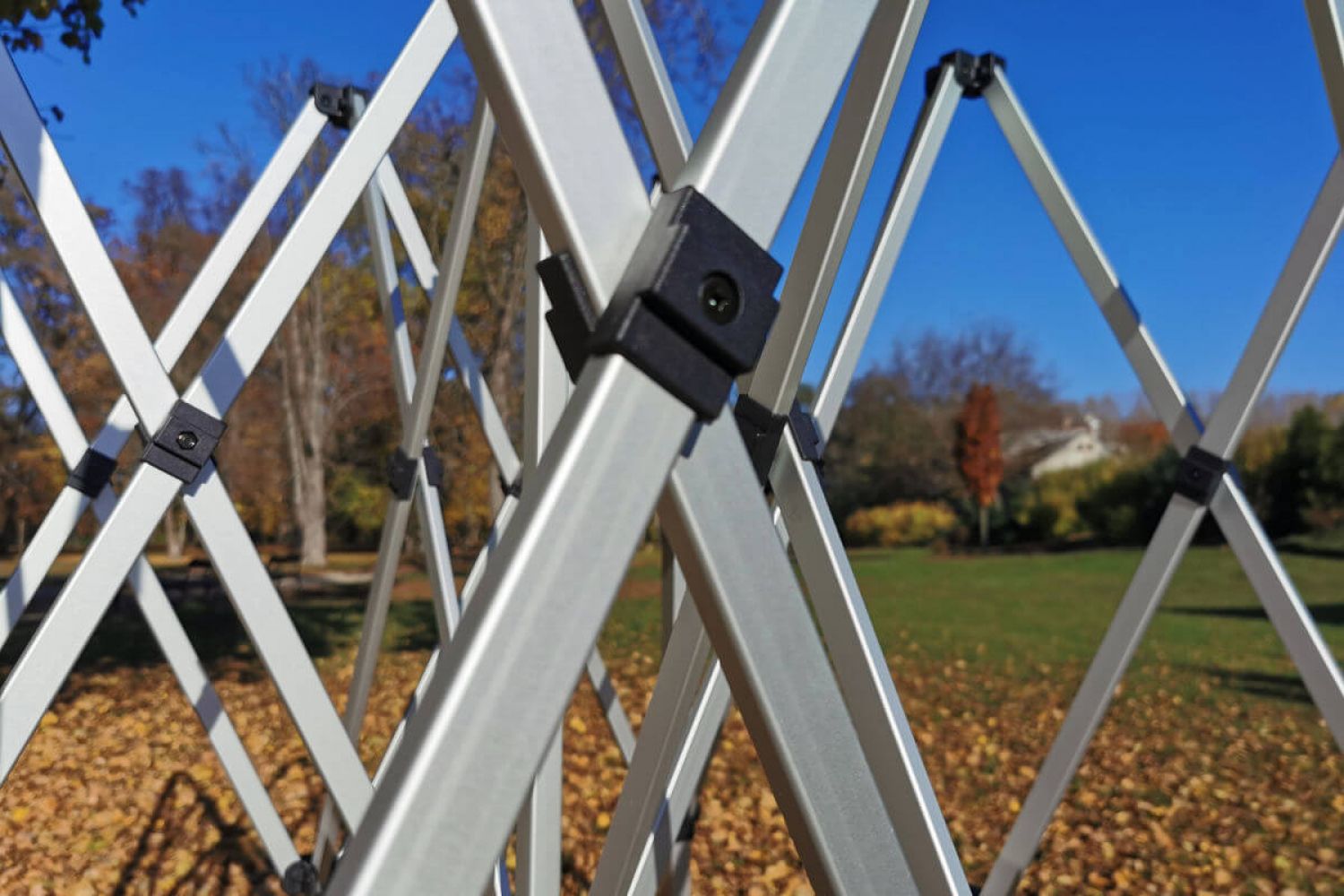 De aluminiumconstructie is grijs van kleur. De verbindingen van de constructie zijn van plastic, gemaakt van hoogwaardig hard kunststof. Het mechanisme op de tentpoten maakt het gemakkelijk om de tent op te zetten. De meest belaste delen zijn versterkt. Het lage gewicht maakt het gemakkelijk om de tent naar de gewenste locatie te verplaatsen.