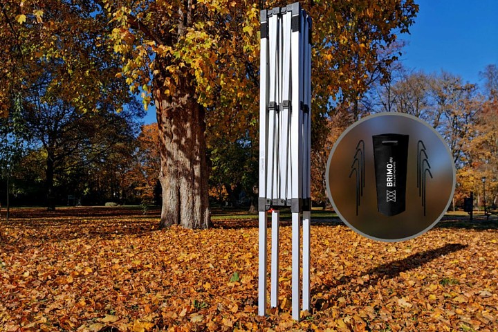 - Model Exclusive van aluminium, geschikt voor gebruik bij wind tot 60 km/h. Poten met openingen voor verankering in de grond met haringen - gratis!
