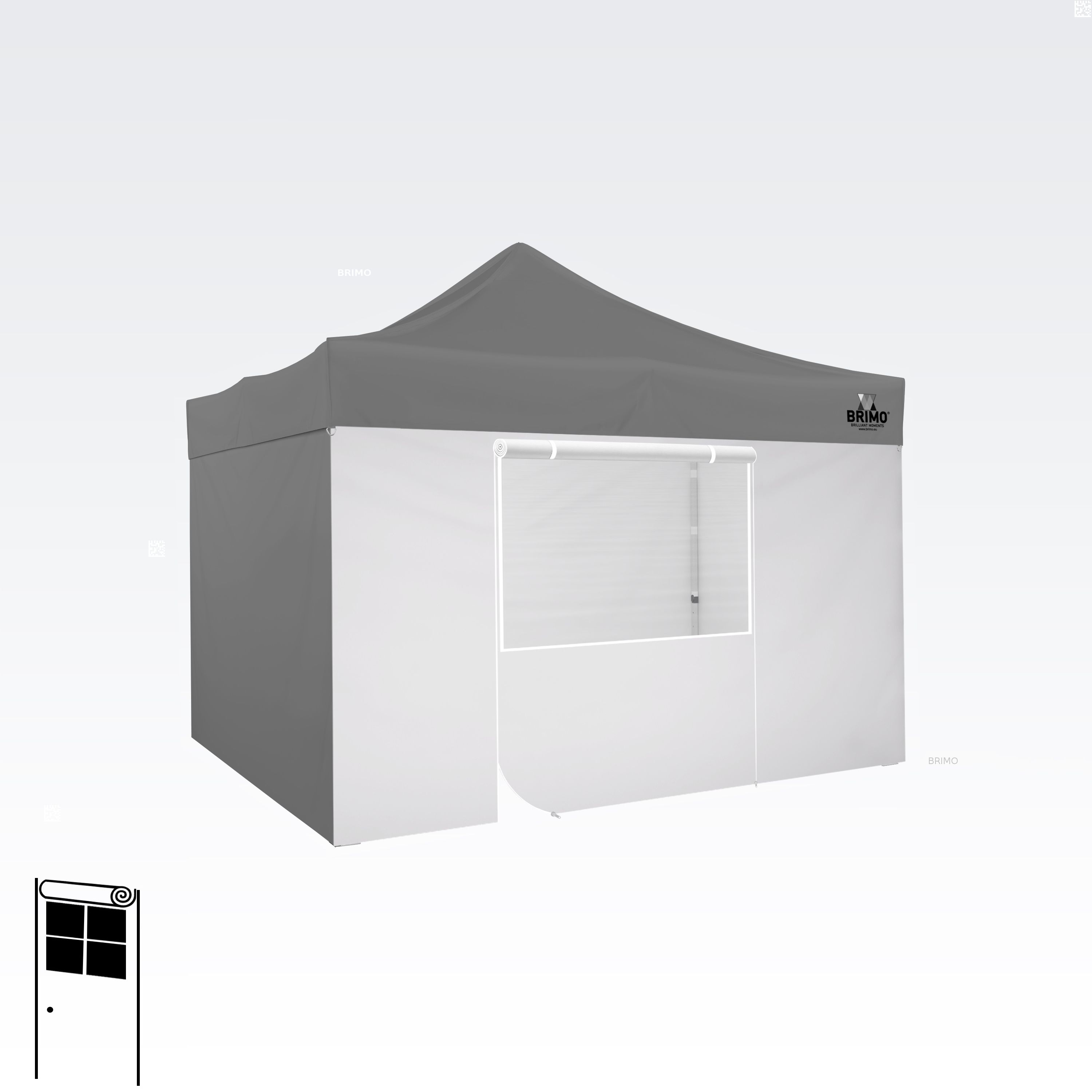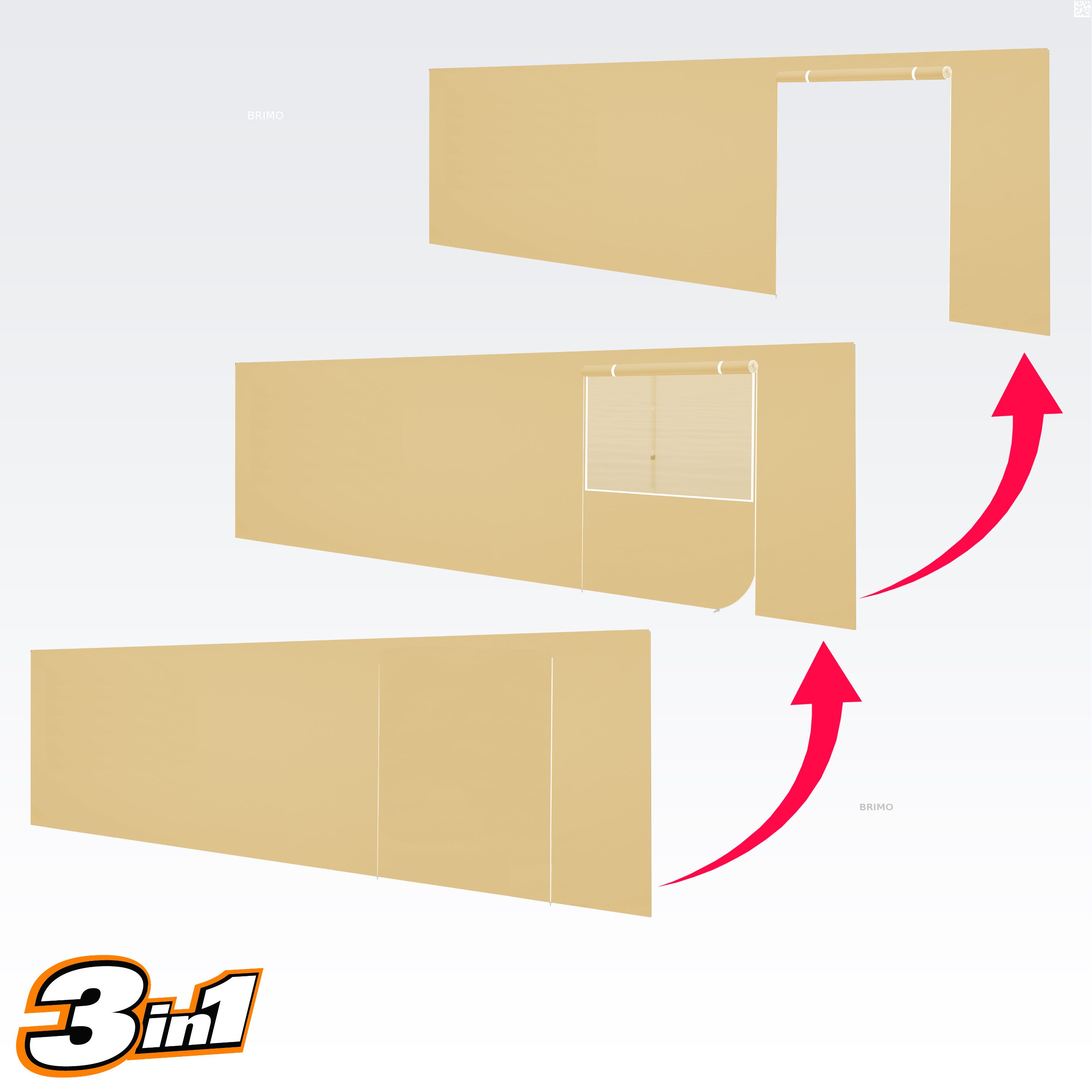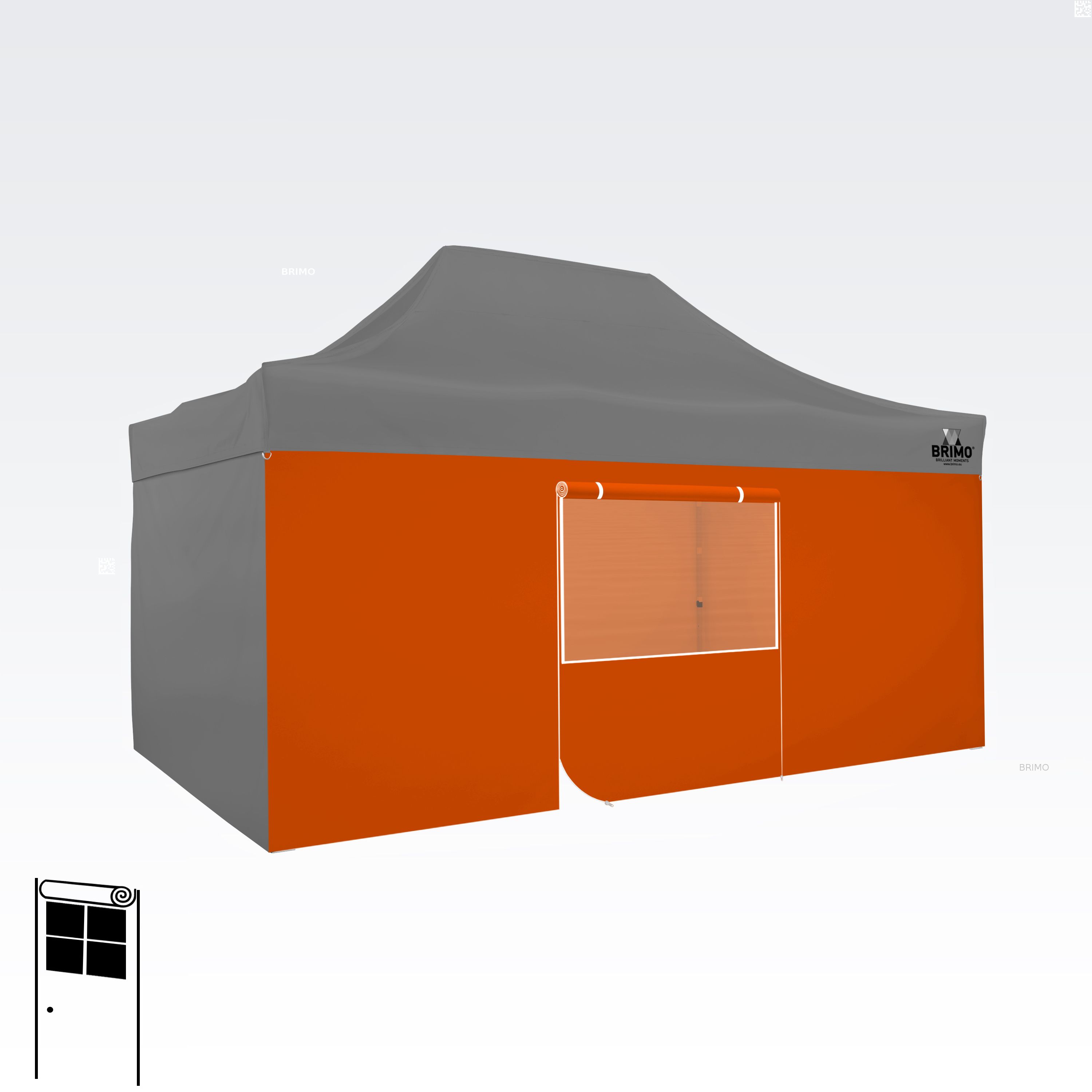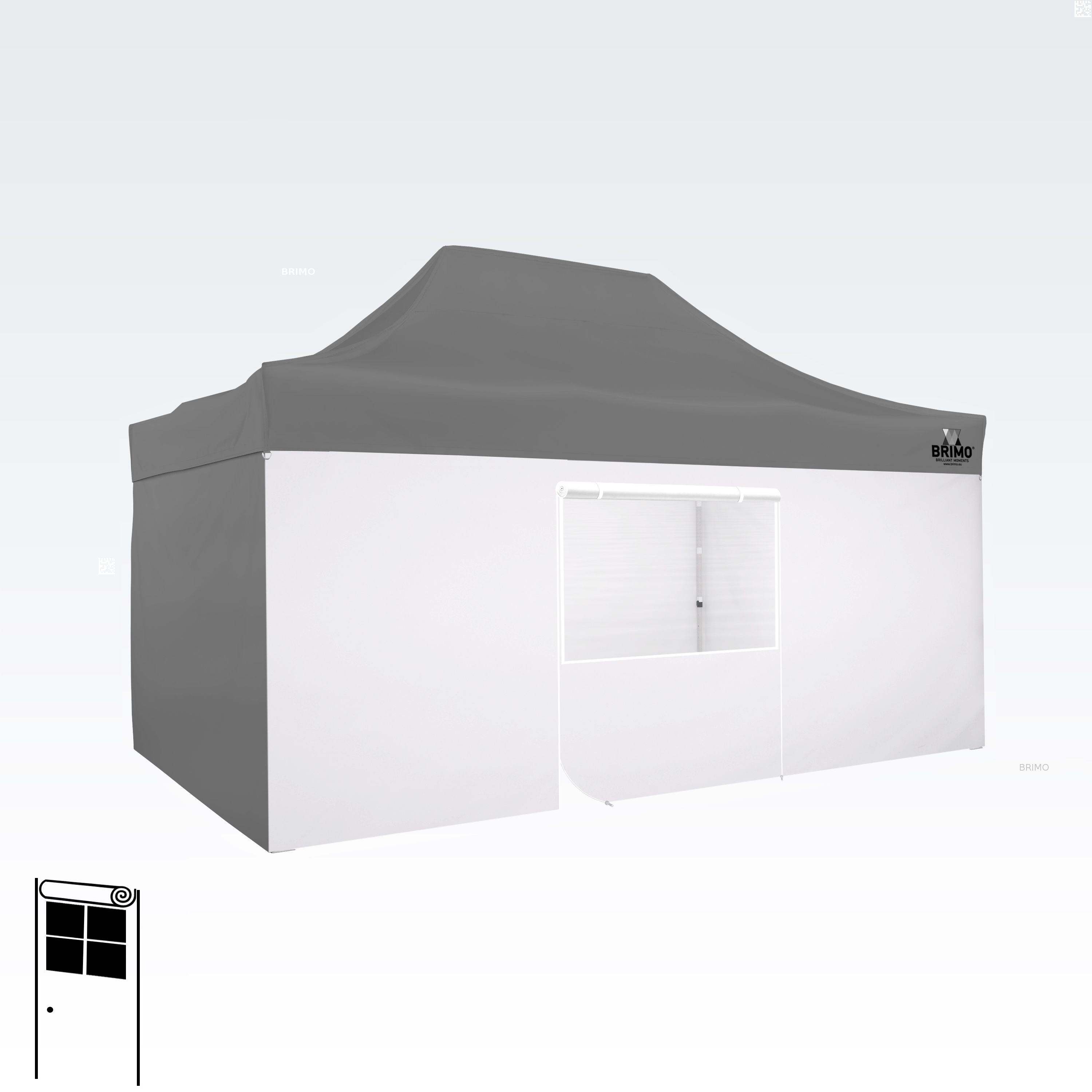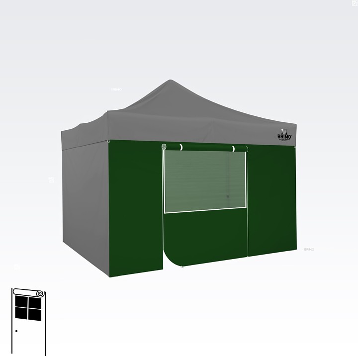 Deze multifunctionele wand sluit je tent volledig af. De basisset van de tent bevat drie volledige wanden in de kleur van het dak. Je kunt ook een vierde wand kiezen in de kleur die je nodig hebt. De wand kan worden gebruikt als een volle wand, een wand met een raam, of als een ingang voor de tent met een ritsdeur.
