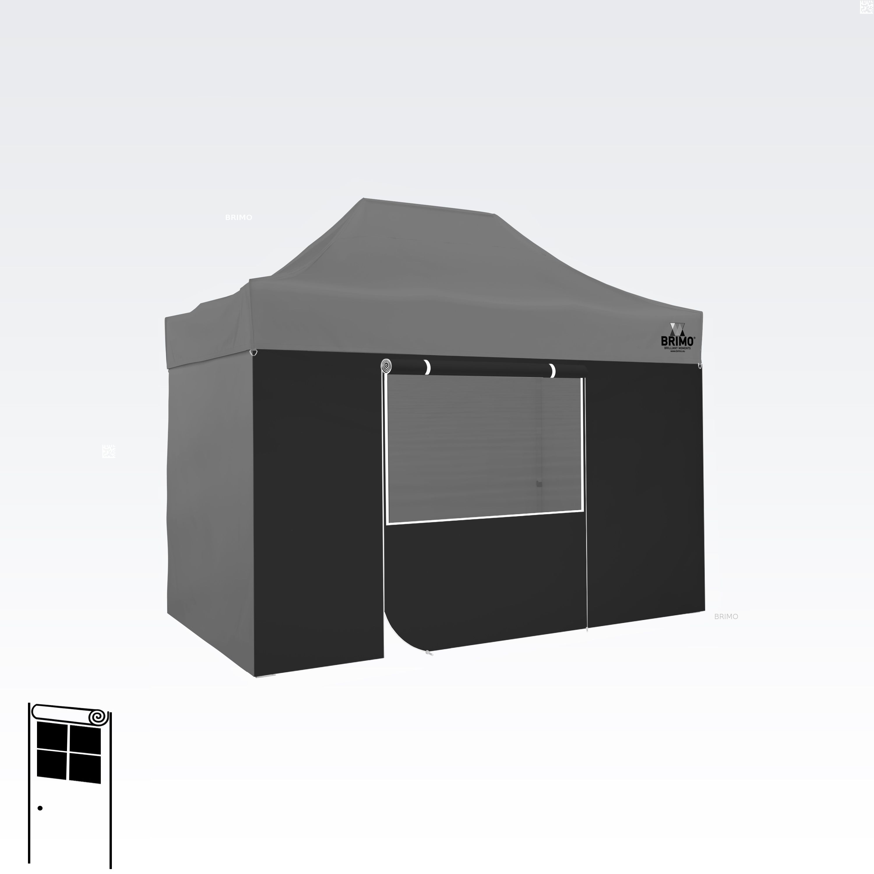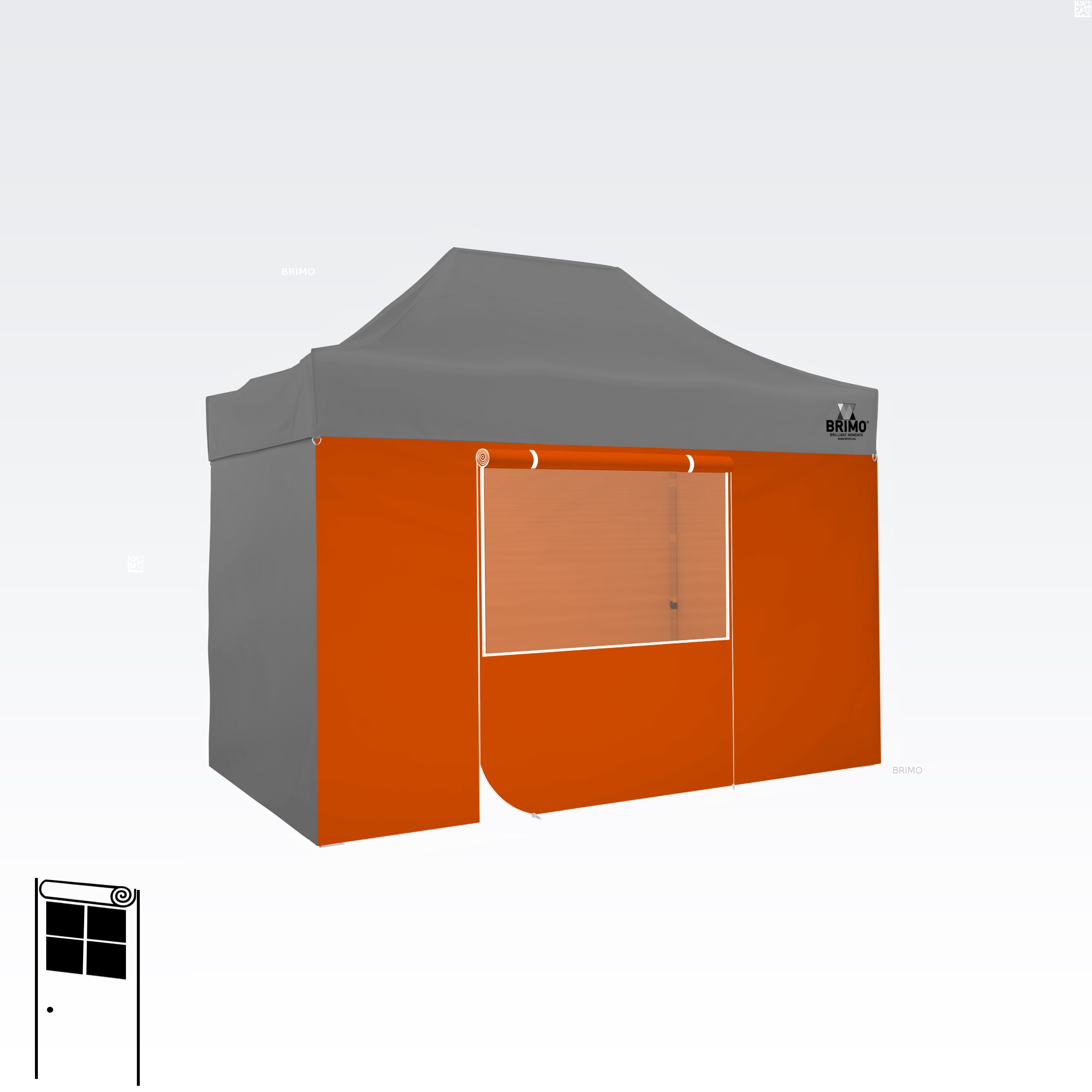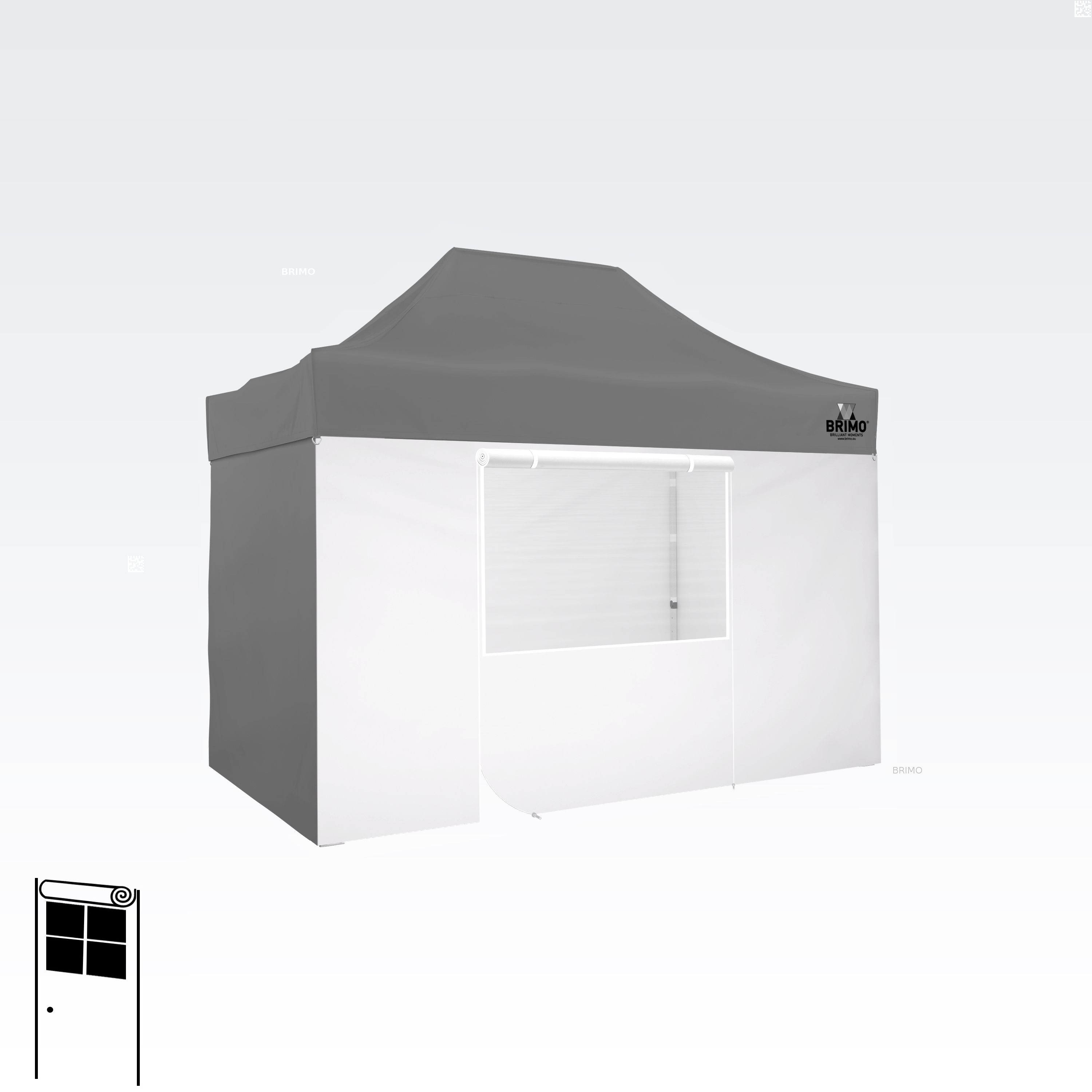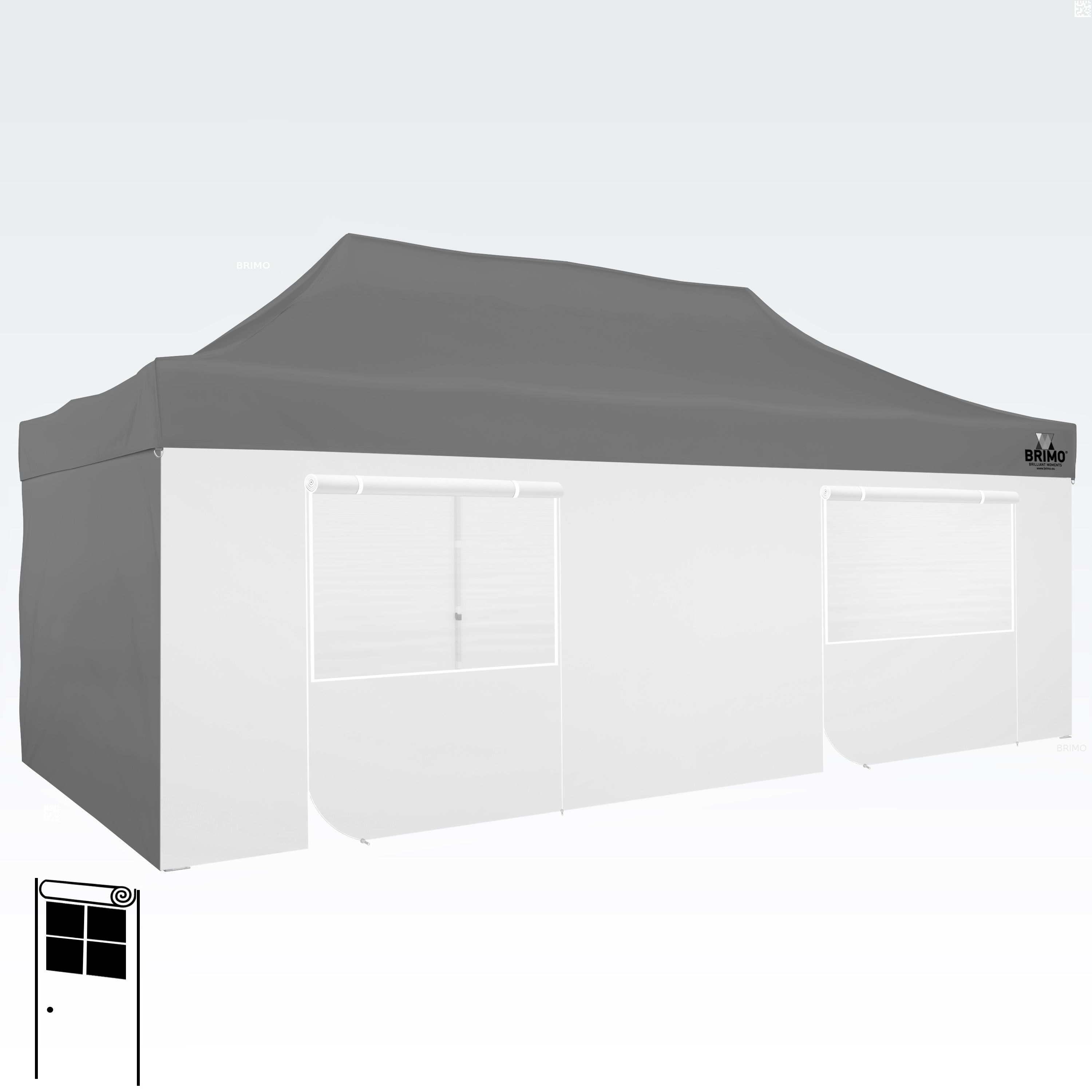 Deze multifunctionele wand sluit je tent volledig af. De basisset van de tent bevat drie volledige wanden in de kleur van het dak. Je kunt ook een vierde wand kiezen in de kleur die je nodig hebt. De wand kan worden gebruikt als een volle wand, een wand met een raam, of als een ingang voor de tent met een ritsdeur.